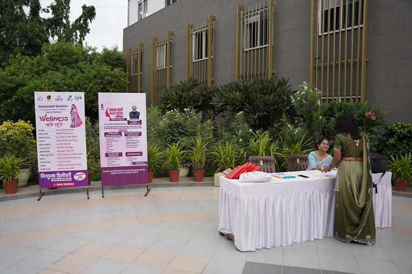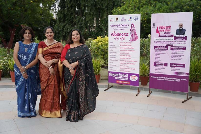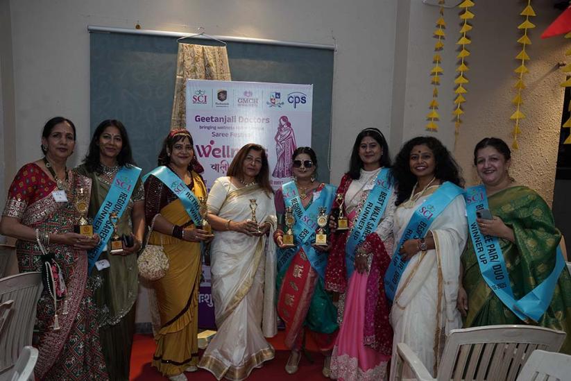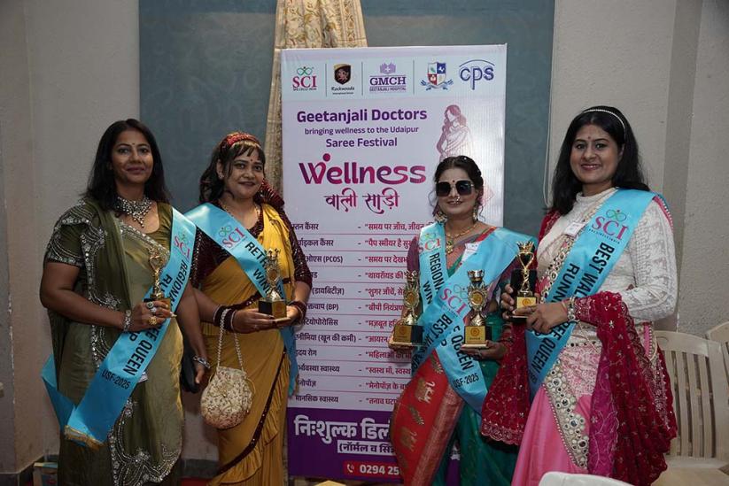 उदयपुर में आयोजित साड़ी फेस्टिवल में गीतांजली हॉस्पिटल का “वेलनेस वाली साड़ी सेशन” विशेष आकर्षण रहा। कार्यक्रम का आयोजन शी सर्किल से श्रीमती तारिका भानूप्रताप, सीपीएस स्कूल और रॉकवुड्स के सहयोग से किया गया| इस अवसर पर गीतांजली हॉस्पिटल की वरिष्ठ विशेषज्ञ डॉ. पूजा गांधी, डॉ. रेनू मिश्रा, डॉ. नलिनी शर्मा, डॉ. अनुपमा हाड़ा, डॉ. नीलम तोषनीवाल, डॉ. भामिनी जाखेटिया और डॉ. रेखा राठौड़ ने सक्रिय भागीदारी निभाई। गीतांजली चिकित्सकों के समूह को “बेस्ट साड़ी ग्रुप” के सम्मान और पुरस्कार से नवाज़ा गया।सूचना प्रसारण विभाग से हरलीन गम्भीर और मानव संसाधन विभाग से राधिका सुवालका ने भी इस साड़ी उत्सव में अपनी सहभागिता दर्ज कराई।