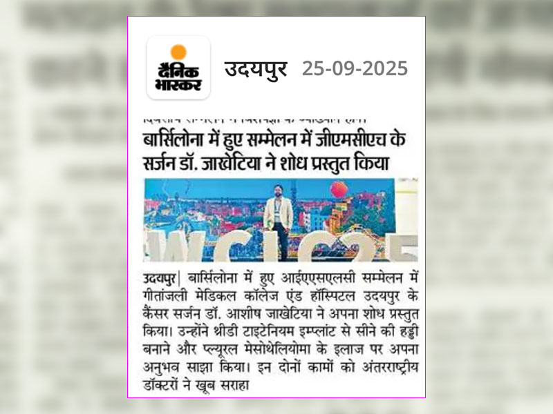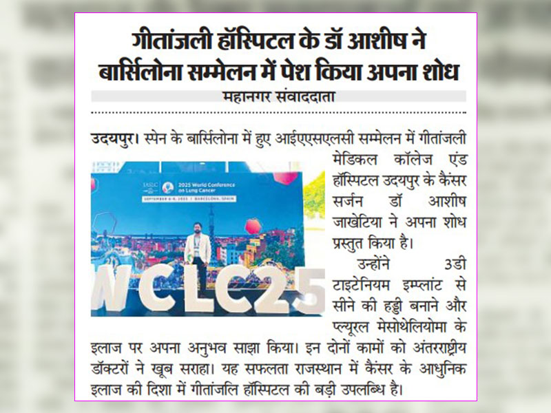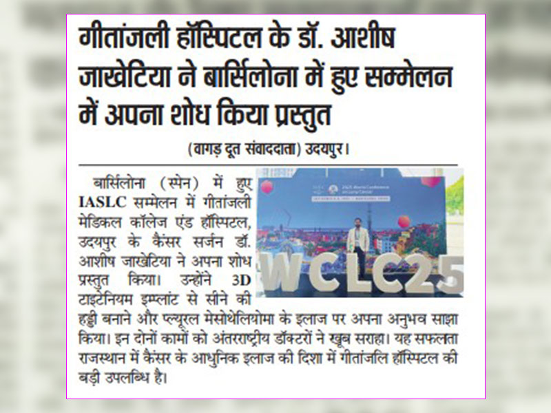 Gallery: गीतांजली हॉस्पिटल के डॉ. आशीष जाखेटिया ने बार्सिलोना में हुए सम्मेलन में अपना शोध किया प्रस्तुत